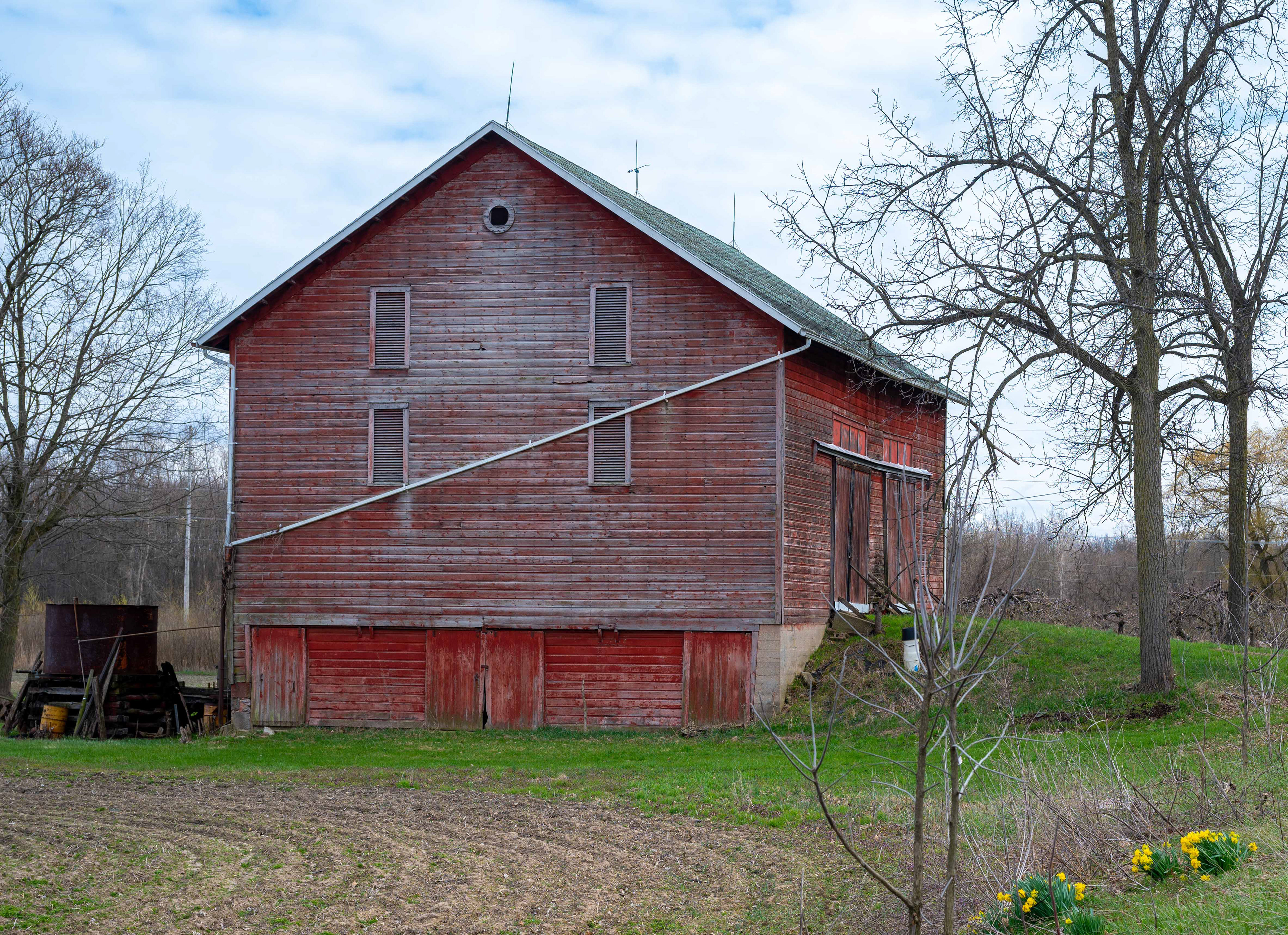 the barn below is only a few feet from a well traveled main road (shot 4/2025)